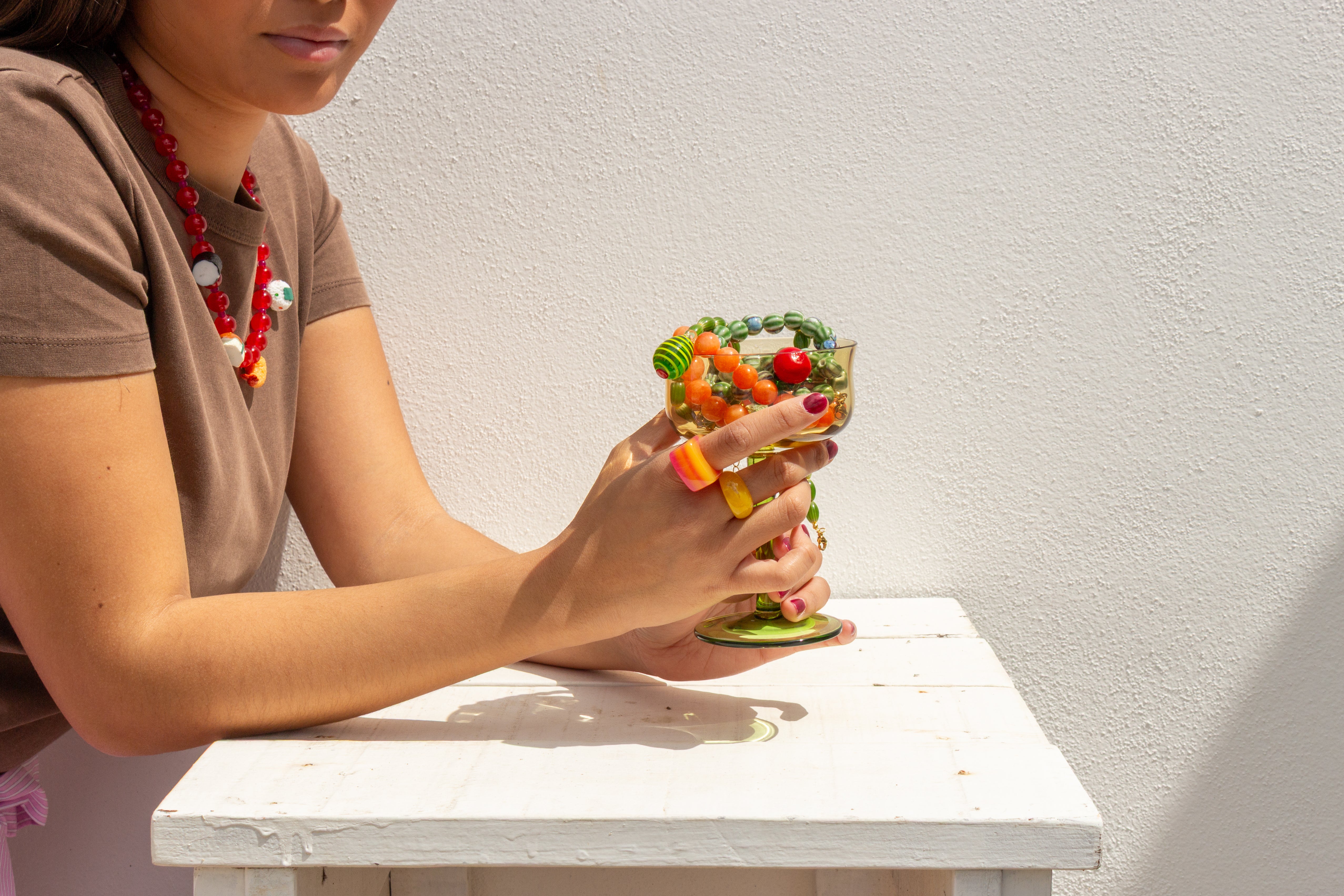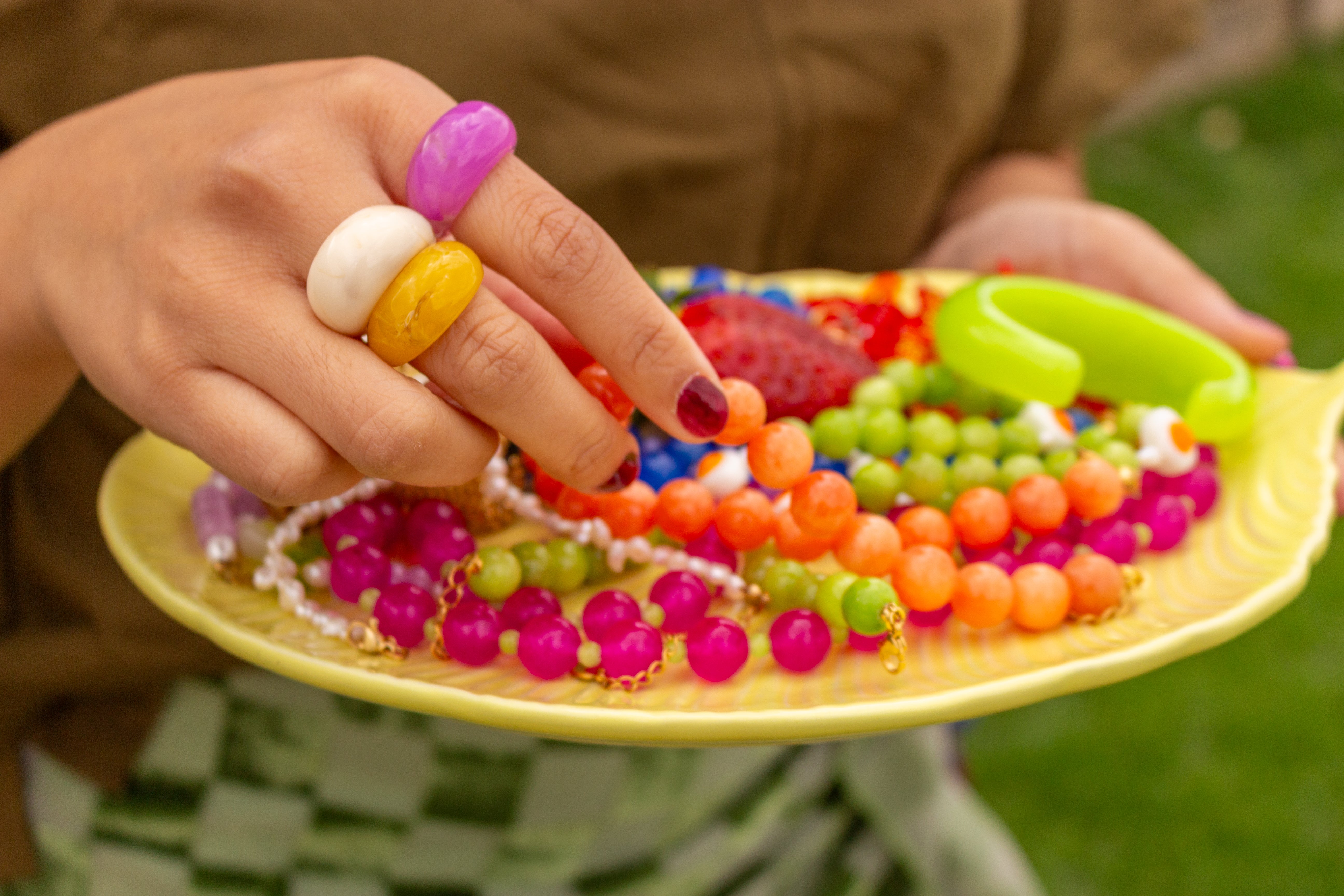 Peachy orange resin ring in a vintage and boho chic style, ideal for this summer.
