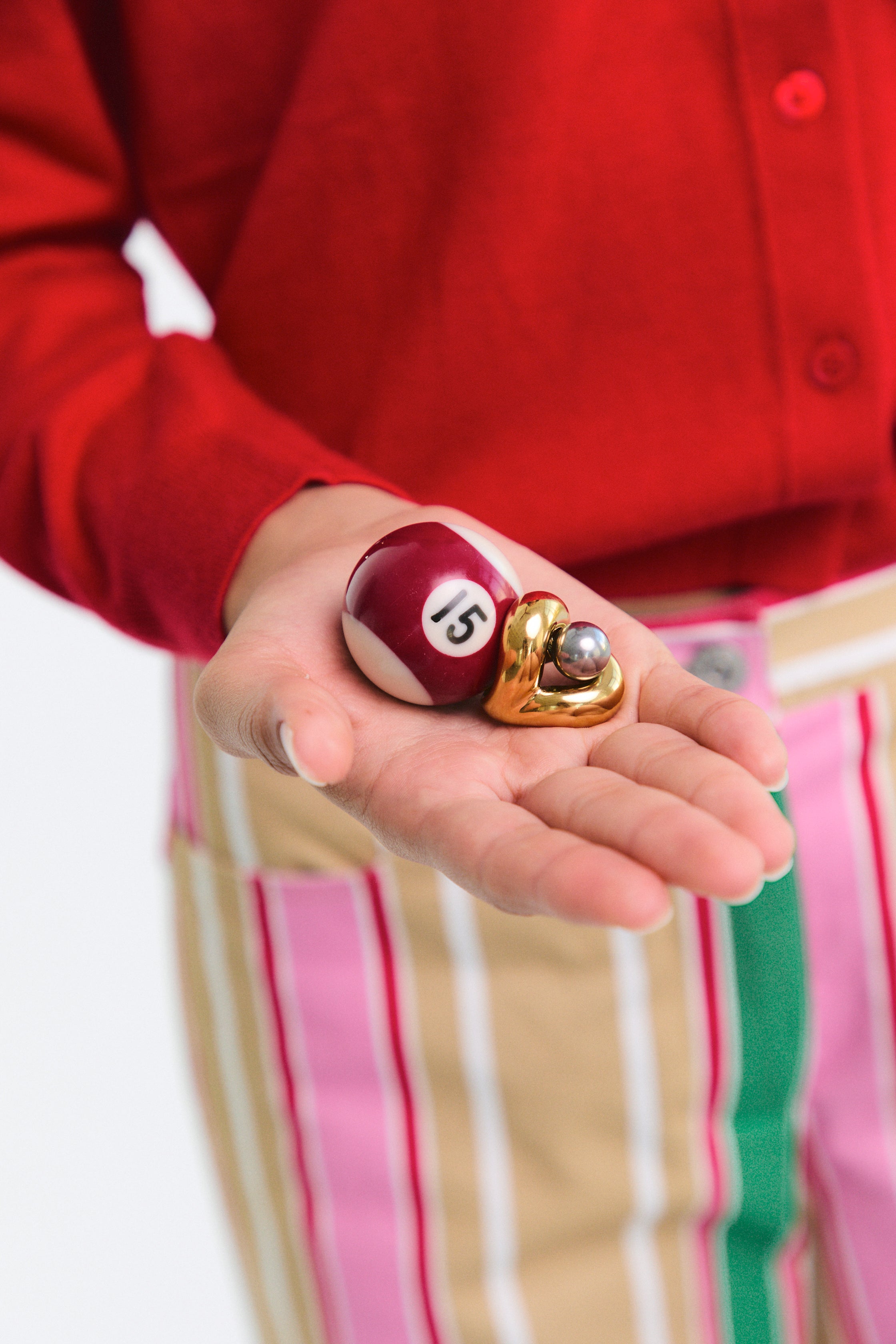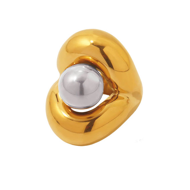 Anillo dorado de acero inoxidable hipoalergénico bañado en oro que combina dorado y plateado. Maxi y con forma de un beso