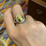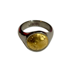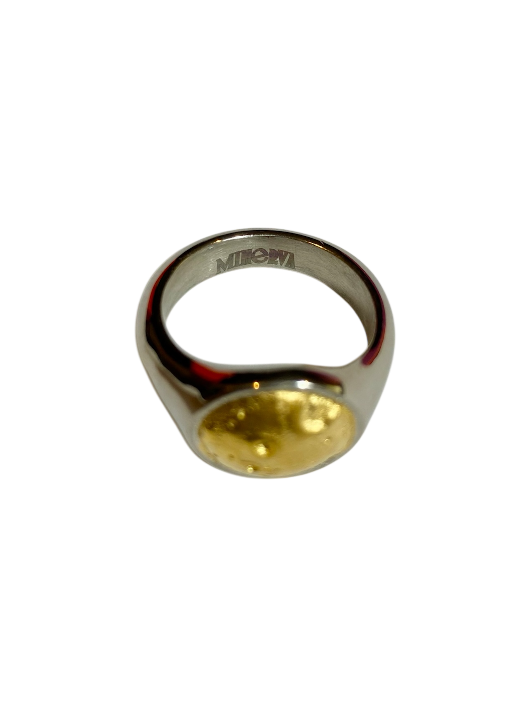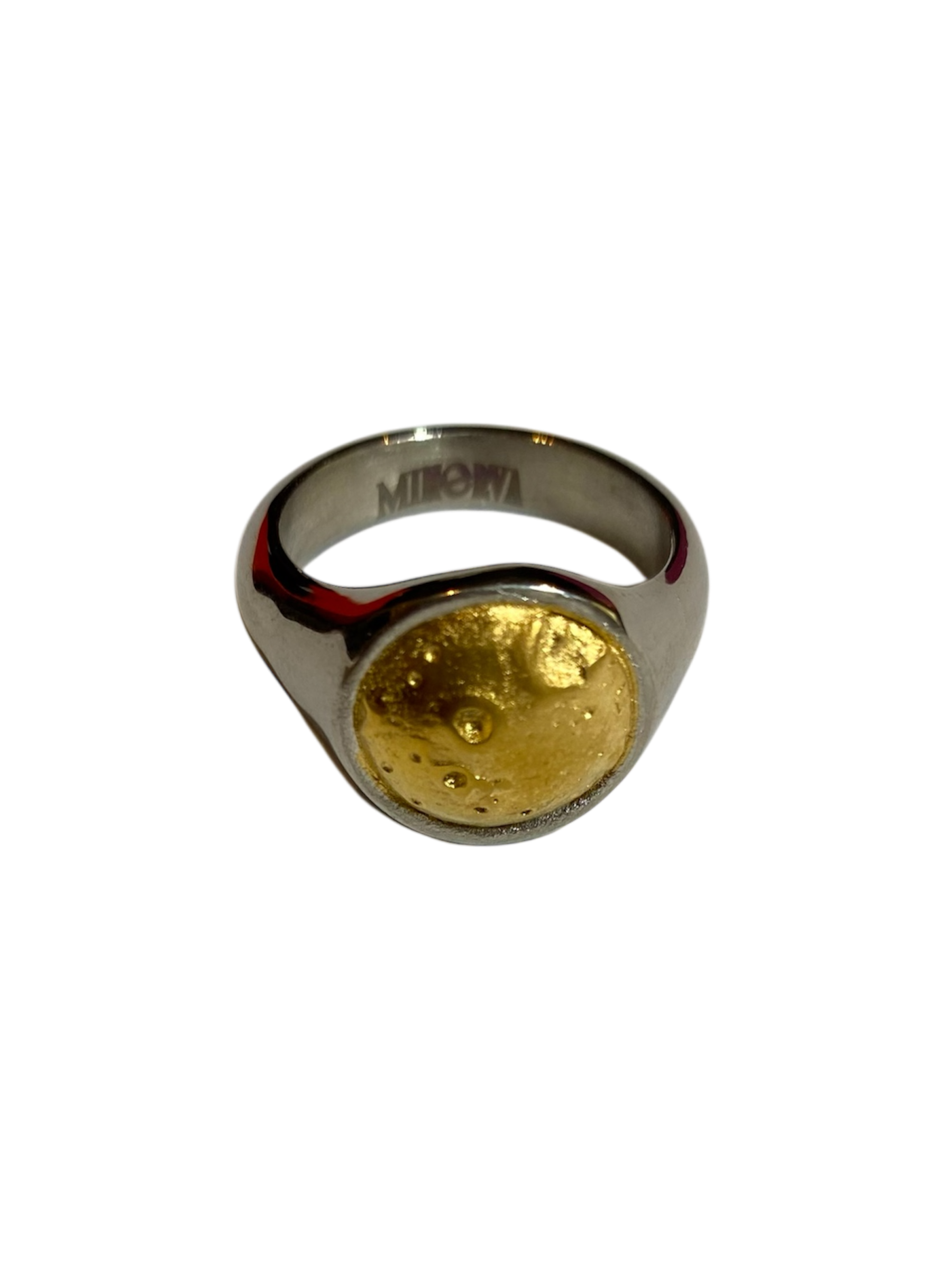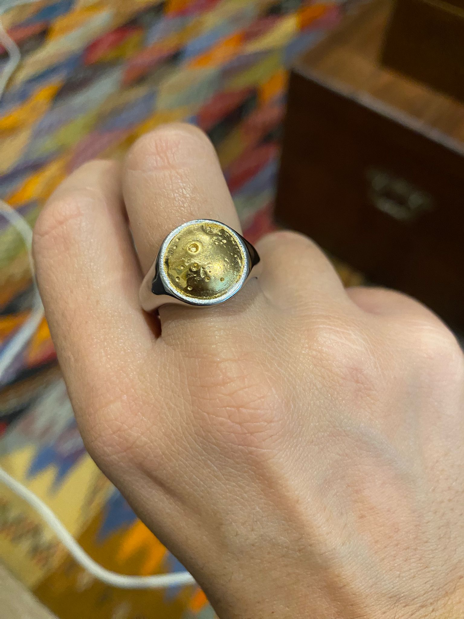 Anillo  de acero inoxidable hipoalergénico plaetado y bañado en oro estilo martilleado con forma de luna llena con detalles de sus cráteres