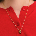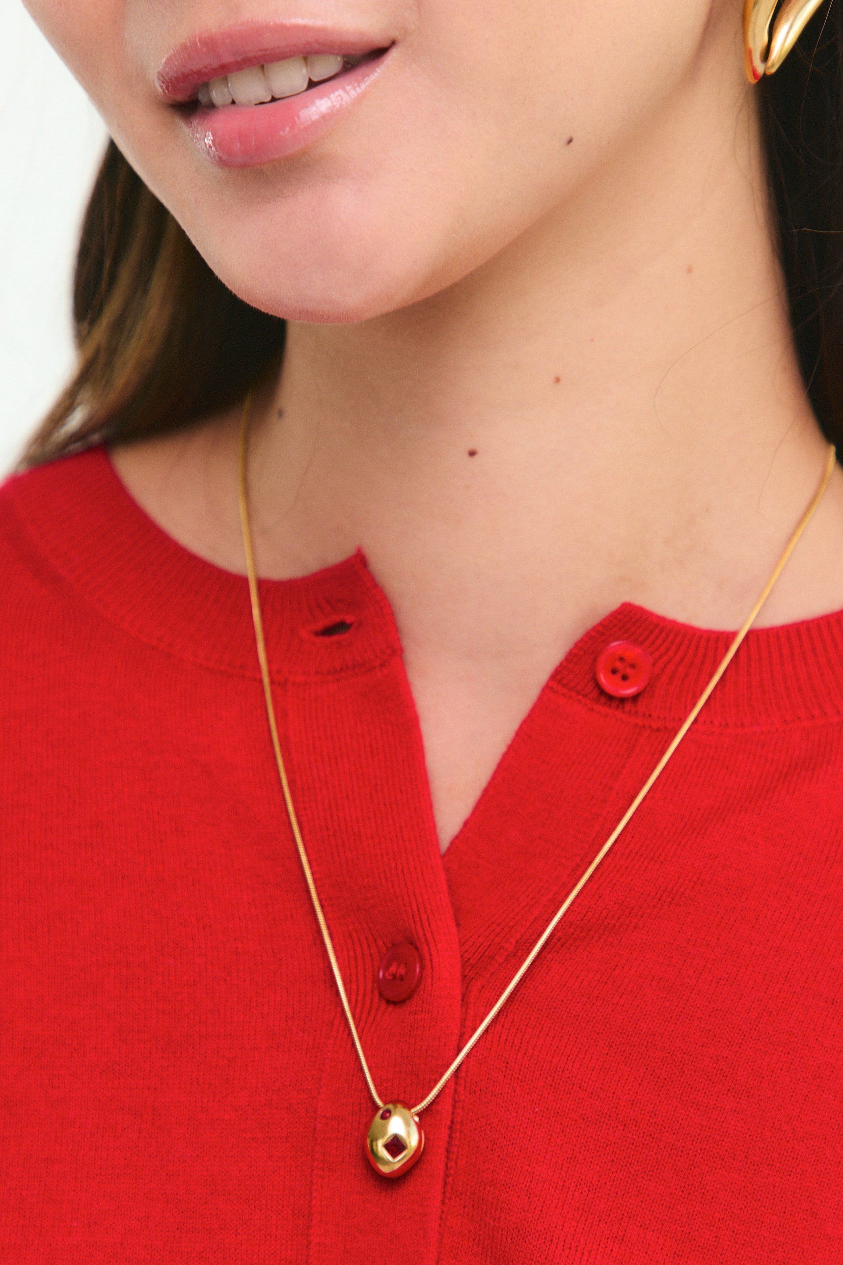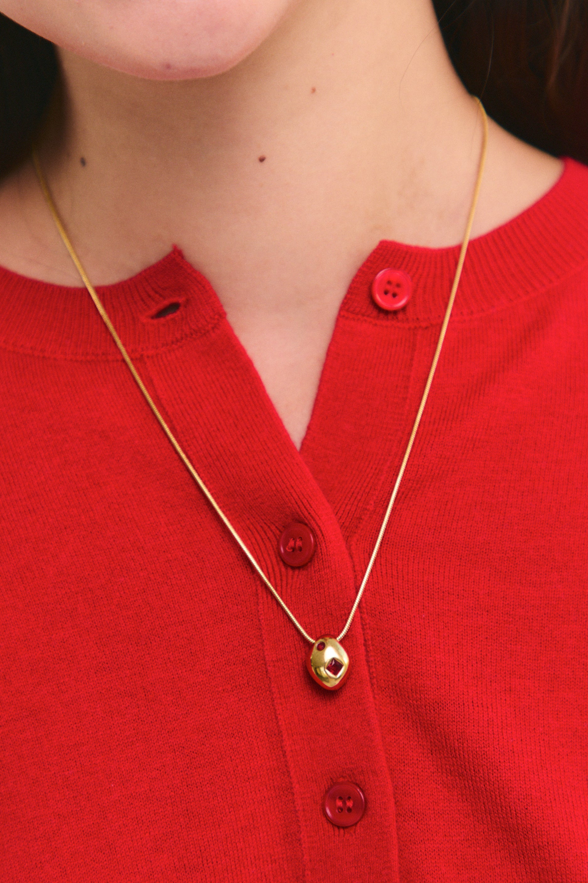 Collar dorado de acero inoxidable hipoalergénico bañado en oro con un charm circular con detalles en rojo en su interior